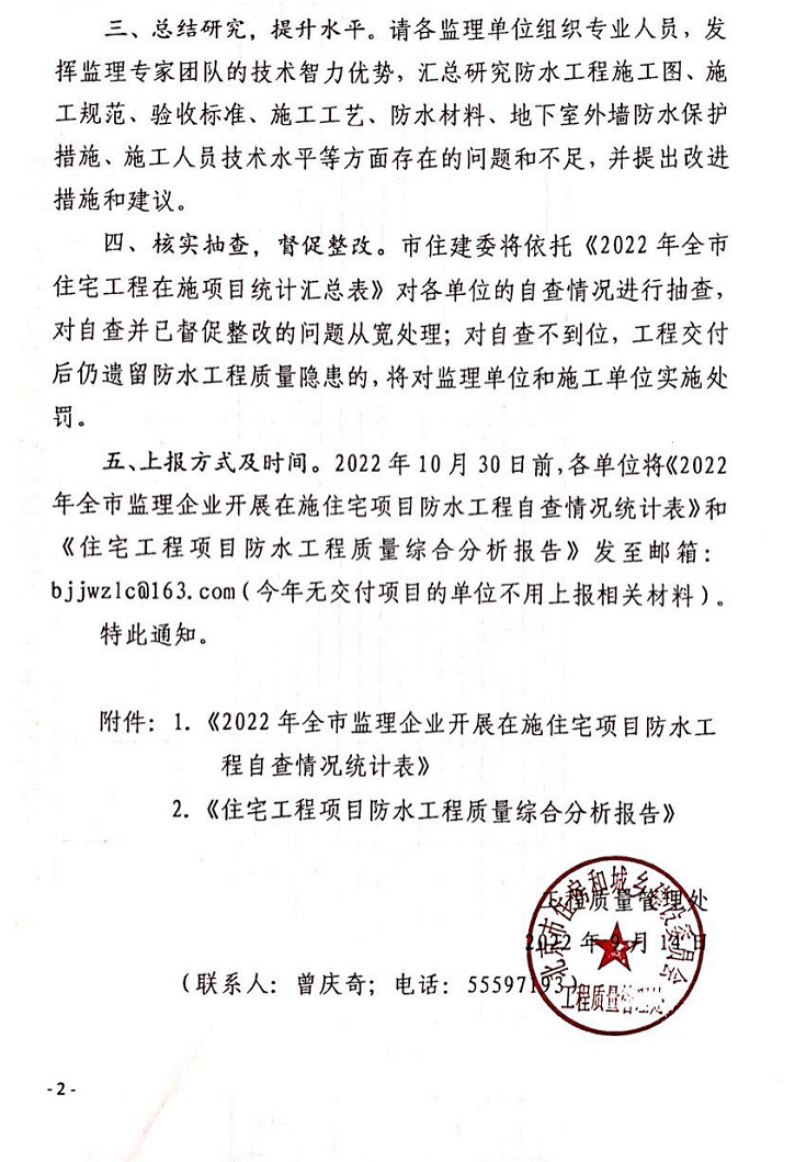 轉(zhuǎn)自:北京市建設(shè)監(jiān)理協(xié)會(huì)鏈接:關(guān)于組織監(jiān)理單位開(kāi)展在施住宅項(xiàng)目防水工程質(zhì)量自查工作的通知-北京市建設(shè)監(jiān)理協(xié)會(huì)(bcpma.org.cn)